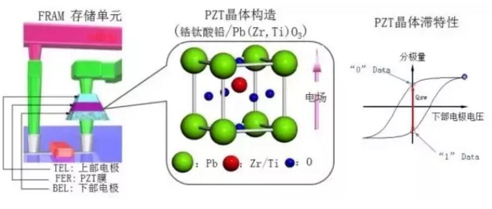 FRAM是運用鐵電材料(PZT等)的鐵電性和鐵電效應(yīng)來進(jìn)行非易失性數(shù)據(jù)存儲又可以像RAM一樣操作。