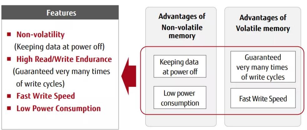 獨特性能成就技術(shù)“硬核”,F(xiàn)RAM是存儲界的實力派。除非易失性以外,F(xiàn)RAM還具備三大主要優(yōu)勢:高讀寫入耐久性、高速寫入以及低功耗,這是絕大多數(shù)同類型存儲器無法比擬的。