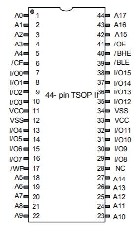 數據讀取是通過將芯片使能(CE)和輸出使能(OE)輸入置為低電平并在地址線上提供所需地址來執行的。讀取數據可通過I/O線(I/O0到I/O15)訪問。字節訪問可以通過置位所需的字節使能信號(BHE或BLE)來執行,以從指定地址位置讀取數據的高字節或低字節。