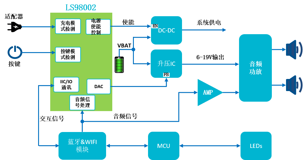 現(xiàn)場(chǎng)可重構(gòu)IC、通用可配置的模數(shù)混合芯片內(nèi)部集成豐富的模擬資源和數(shù)字資源,可輕松替代電路中的各種標(biāo)準(zhǔn)器件,并按照客戶(hù)要求組合成最優(yōu)小型ASIC,縮短開(kāi)發(fā)周期,降低成本。下面介紹LS98002現(xiàn)場(chǎng)可重構(gòu)CPLD芯片應(yīng)用案例—藍(lán)牙音箱。